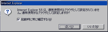- 次に「Internet Explorer」を立ち上げる。その際、下記の確認がでるので、「起動時に常に確認する」にチェックが入ってることを確認し、「はい」をクリック。