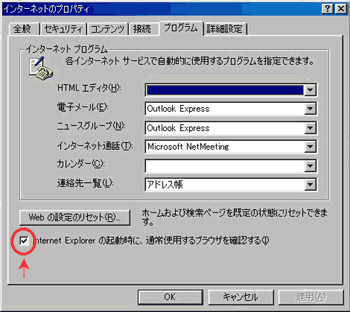 「Internet Explorerの起動時に、通常使用するブラウザを確認する」のボックスをクリックしてチェックマークを入れ「OK」ボタンをクリック。